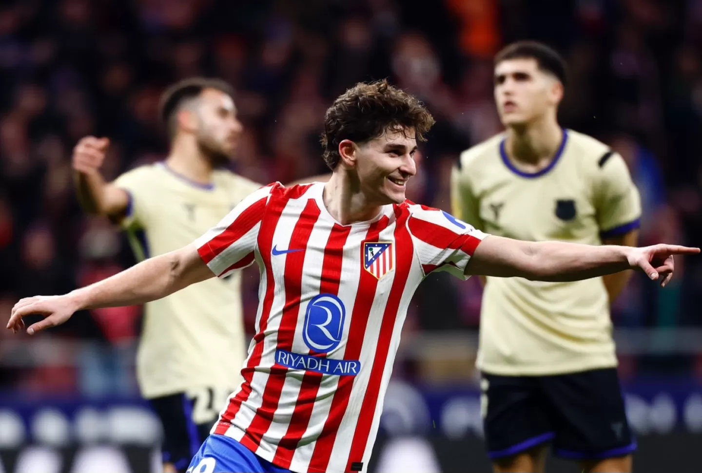 Pemain Atletico Madrid Julian Alvarez melakukan selebrasi usai menciptakan gol. (IG Atletico Madrid)