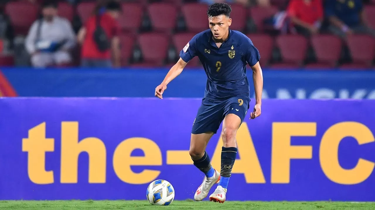 Supachai Chaided, striker Timnas Thailand, masuk dalam daftar top skorer sementara Piala Asia 2023. (YouTube The AFC)