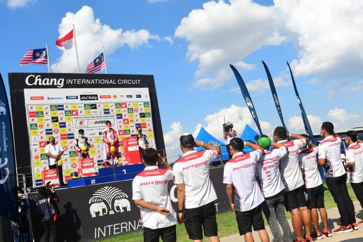 batampos – Lagu Kebangsaan Indonesia Raya menggema di Chang International Circuit, Thailand, Sabtu (26/3).