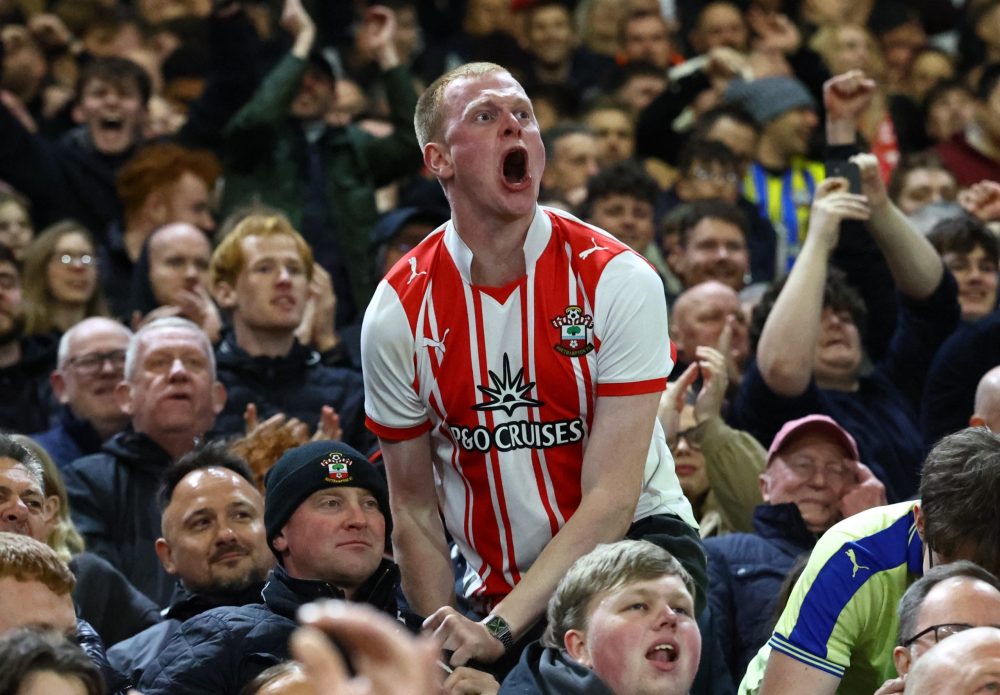 Supporter Southampton menyemangati timnya saat pertandingan melawan Arsenal. F. x.com/SouthamptonFC.